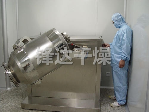 装料的筒体在主动轴的带动下,作周而复始的平移、转动和翻滚等复合运动,促使物料沿着筒体作三向复台运动,从而实现多种物料的互相流动、扩散、积聚、掺杂.以达到均匀混合的目的。